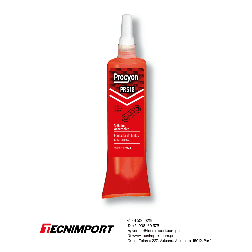 Procyon PR518 Formador de Juntas y Empaques, es un anaeróbico de uso general. Desarrollado para aplicaciones que requieran alta viscosidad como fácil desarme y optimo sellado. El producto cura en ausencia de aire al ser confinado entre dos superficies metálicas.