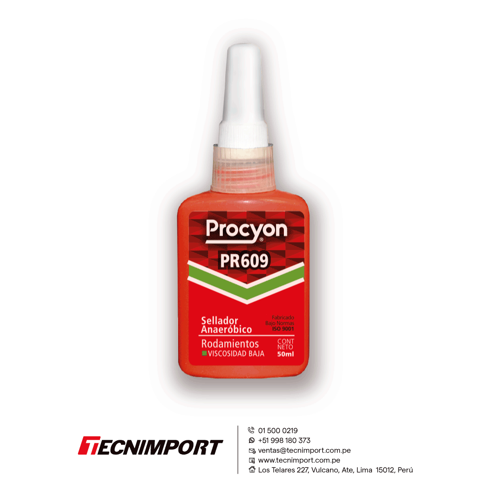 Procyon PR609 es un sellador y fijador anaeróbico de rodamientos y las piezas cilíndricas sobre ejes que requieran Baja Viscosidad. Aumenta la resistencia del prensado por interferencia. Curado rápido.